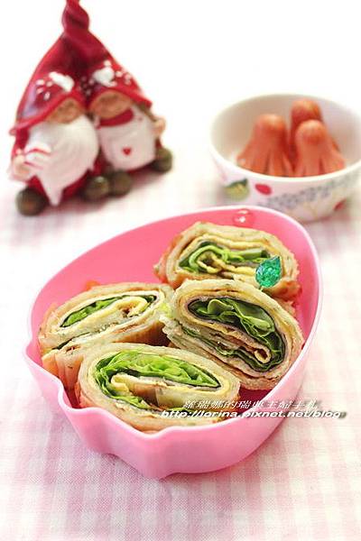 另一個則是包了孩子們愛的蛋皮、火腿、海苔、青菜而成的