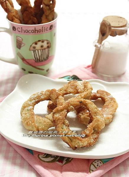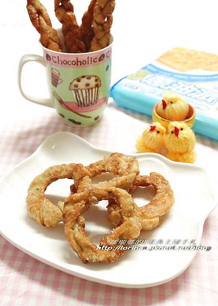 一是甜甜圈的變化版~圈圈甜酥派。只要把餅皮切成細長條