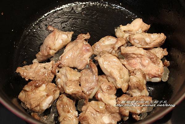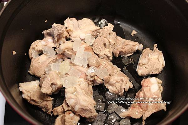 3. 炒至冰糖全數融化,小排裹上一層糖衣