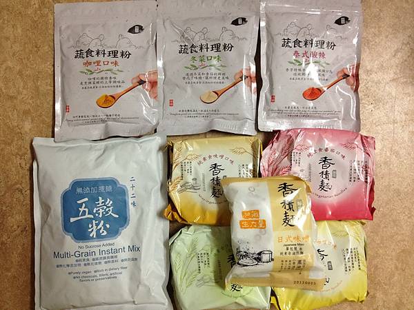 (各種口味的香積麵、香積飯、料理粉、即溶飲品等,